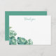 These flat blank note cards with tropical watercolor greenery feature the words "Thank You" in a stylish hand-lettered script, paired with lush monstera palm leaves from my original watercolor artwork. Each set of notecards with envelopes includes a solid turquoise green back, adding a vibrant tropical touch.