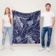 tropical leaf pattern on the navy blue background fleece blanket