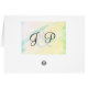 Pretty tropical splash of soft pink, green, yellow and blue with faded green leaves watercolor. Personalize backside with Monogrammed First Name Initials for the Bride and Groom in grey text. Insert your typewritten message thank you note, or delete text box to leave blank. Original Artwork Design by TamiraZDesigns.