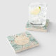 Tropical Leaves Aqua Gold Stone Coaster