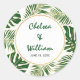 Tropical leaves green gold Save the Date wedding Classic Round Sticker