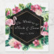 Tropical Leaves Hibiscus Flamingo Wedding Wine Label