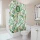 This beautiful shower curtain with multi-hued green tropical leaves and birds of paradise and your last initial in a modern cap font in white inside a double circle would look fabulous in your home. Simple, modern, elegant.