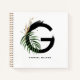 Customizable letter G monogram notebook featuring watercolor tropical leaf, faux gold foil leaf and black watercolor brush accents. Personalize this tropical monogram notebook by adding your name or other details. This boho letter G monogram notebook will be perfect as a gift. Other letters are available.