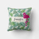 Tropical Leaves Pattern and Pink Flamingo Custom Throw Pillow