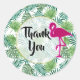 Tropical Leaves Pattern and Pink Flamingo Thanks Classic Round Sticker
