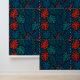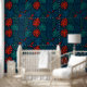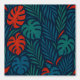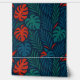 Bring the lush energy of the tropics into your home with this tropical leaves wallpaper. Featuring bold monstera and palm fronds in shades of green, teal, and fiery red against a deep navy background, this design radiates exotic charm and modern elegance.