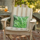 Outdoor pillow in a pattern of Striped zebra plant leaves (Calathea) - digital painting based on a photo of lush jungle foliage
