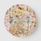 An elegant tropical leopard print. A pretty combination of tropical summer flowers and rainforest wildlife. In pink, gold and turquoise.
