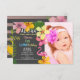 Colourful, bright, adorable, tropical summer Hawaiian Luau Birthday invitation with custom photo and watercolor flowers.