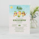 The invitation showcases a picturesque beach backdrop with turquoise waters and sandy shores. A charming, hand-drawn pineapple wearing a party hat takes centre stage, adding a playful and tropical touch. The colours and lush greenery capture the essence of a tropical paradise, setting the stage for a memorable celebration.