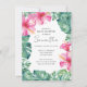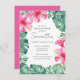 This tropical luau baby shower invitation feature vibrant fuchsia pink hibiscus flowers with monstera palm leaves. Use the template fields to add your personalized information. Order printed cards, printable invites or digital invitations. For more custom baby shower invitation designs and DIY invitation templates visit www.zazzle.com/dotellabelle