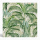This is a vintage-style illustration filled with vibrant palm leaves and tropical plants in rich shades of green. Set against a soft neutral background, the intricate details create a sophisticated and elegant touch for any space. The illustration style is detailed, creating a refined and natural design effect.