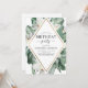 Tropical Magnolia Flowers with Floral Greenery Palm and Faux Gold Foil Geometric Border Spring or Summer Any Age Birthday Party Invitations - includes beautiful and elegant script typography with modern tropical botanical flowers and greenery for the special 13th, 15th, 16th, 18th, 30th, 40th, 50th, 60th, 70th, 80th, 90th, 100th birthday party.
