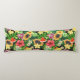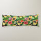 Tropical mix-fruit, flowers and leaves on black body pillow