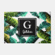 Get a fun island bungalow look to your entryway! This tropical modern banana leaves design has your initial letter and family name in script. Island chic is easy with this great tropical doormat.
