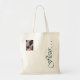 These bags were super cute (I purchased 3). The material is more of a canvas look & feel. The colour of the bag is slightly off white, but the letters look exactly as pictured. I took 3 photos in different lighting. Would recommend! I liked how there was an option to choose the font and colour of the name. The words are legible and the colours are exactly as pictured.