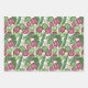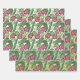 Tropical pink and green monstera leaves and palm tree fronds on white, silver and gold backgrounds, you'll have fun with these wrapping paper sheets.
