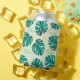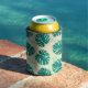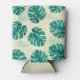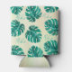 Big palm Hawaiian tropical leaves and aloha handwriting style script over a watercolor washed cream ivory background decorative personalized can cooler (your name on the bottom).