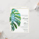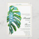 Tropical Monstera Leaf Green Gold Beach Wedding Invitation