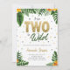 2E invitation à l'anniversaire dans le style tropical, avec des feuilles tropicaux et des fleurs jaunes pour les enfants nés deux Be Wild.