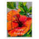 From an original watercolor painting of a vibrant colourful tropical hibiscus flower. This floral painting design is bright and orange with a tropical flora and foliage theme.