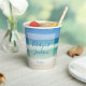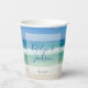 This beautiful beach wedding paper cup features a gorgeous photo of the ocean waves for a destination wedding. Pretty beach photography paired with elegant white and blue typography creates a chic, modern look for a tropical island event. Lovely personalized seaside decor.