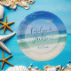 This beautiful beach wedding paper plate features a gorgeous photo of the ocean waves for a destination wedding. Pretty beach photography paired with elegant white and blue typography creates a chic, modern look for a tropical island event. Lovely personalized seaside decor.