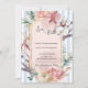 The warm blush center panel highlights your wedding details while the surrounding watercolor botanicals create a lush, nature-inspired aesthetic. The elegant floral arrangement and tropical greenery make this design ideal for couples planning a coastal, island, or tropical garden wedding celebration.