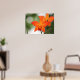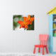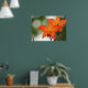 Vibrant tropical orchid poster makes a bold decor choice for home or office. Brilliant orange orchids stand out against muted green background.