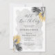 Elegant and chic tropical palm bridal shower invitation features two arrangements of black line drawn palm leaves and gold textured foliage. The birthday heading is written in a modern and open script. A soft and romantic grey watercolor wash pulls the design together on the front and back. Very easy to customize. This item is part of the Elegant Tropical Palm collection. The timeless aesthetic makes this appropriate for any time of the year.