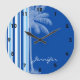 Tropical Palm; Blue & White Stripes Large Clock