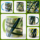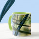 Designed by Nature with a Tropical Vibe, a view of the blue sky and sunlit foliage through dark shaded palm fronds this mug in shades on blue, green and yellow is a beautiful natural abstract.
