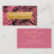 Present your best self to your clients, with Hawaiian tropical flair, whenever you use these chic, striking, stylish, modern, custom name business cards. Crisp, white handwritten script typography in a faux gold foil rectangle overlays a graphic, elegant, tropical palm leaf pattern of dusty rose pink gradations on black. Personalize with your full name and business on the front. Fill in the dusty rose pink back side with your phone numbers, address, email, website, and social media accounts. Makes a chic, professional, and stylish statement wherever you go.