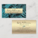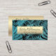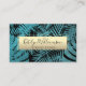 Tropical palm gold teal elegant script typography business card