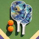 Have fun playing pickleball with this super fun paddle featuring a tropical palm tree leaf pattern. Add your name, phone number or custom text to the bottom edge so you'll never lose your paddle again!! Whether you're heading out for rec or competitive play, this unique, one of a kind custom paddle will definitely become your favourite - and you're sure to get compliments. A perfect gift for beginners and experienced players alike - get two and match with your pickleball partner!!