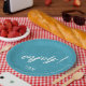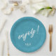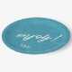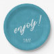 Colourful, paper plate design featuring a seamless pattern of palm leaves in shades of teal with bold, white 'Enjoy text. Add your initials and wedding date using the provided template. This tropical design is perfect for summer, beach and tropical weddings, birthdays and other special events. Search ID577 to see matching products.