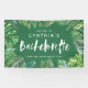 Modern tropical palm leaf watercolor foliage bachelorette party banner. Hand painted effect script text. Part of a on trend summer collection. Background colour can be changed.