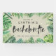 Modern tropical palm leaf watercolor foliage bachelorette party banner. Hand painted effect script text. Part of a on trend summer collection. Background colour can be changed.