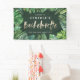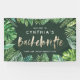Modern tropical palm leaf watercolor foliage gold effect bachelorette party banner. Hand painted effect script text. Part of a on trend summer collection. Background colour can be changed.