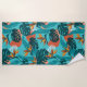 Tropical palm leaves and hibiscus flower pattern beach towel