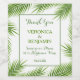 The design features trendy tropical green palm leaves on a simple clean white background with a coordinated border and wording.