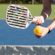 Personalize this paddle with monogrammed initials for a fun and distinctive touch. Perfectly blending girly chic with elegant professionalism, this paddle is ideal for both casual and competitive players. Its cool and cute design makes it stand out on the court. Elevate your game with this fun personalized pickleball paddle and enjoy the captivating blend of tropical elements and stylish black and white stripes!