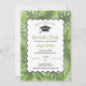 This modern and colourful invitation is ideal to celebrate a graduation party with a tropical theme. The festive design include a graduation cap and a border illustration with tropical palm leaves in shades of green. This is a happy invitation great for a young and proud high school or college student.