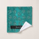 Teal palm leaves tropical Hawaiian pattern with aloha script over a vibrant ocean green background making a trendy chic elegant personalized bath towel set. ++++++++++ Could be an inspired gift for birthday, newlyweds, family, or couple anniversary or for a vacation holiday beach cottage housewarming. You can easily customize it with a script signature name.