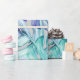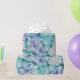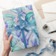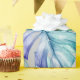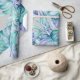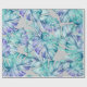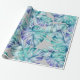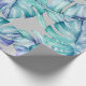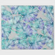 Watercolor jungle leaf gift wrap in accents of green, blue and purple.