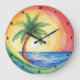 Tropical Palm Tree and Ocean Inspired Artwork Large Clock