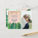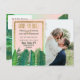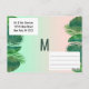 Elegant, chic, and modern tropical beach faux printed gold border and green palm tree fronds and banana leaves on pink and mint green gradient ombre with faux printed gold foil typography summer Save-the-Date wedding Postcards. This classic and sophisticated design is perfect for the trendy and stylish marrying couple. Personalize with your own message on the front as well as a customized monogram initial on the back. All photo print design.
