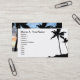 Simple black and white professional business cards with a palm tree design on the front with an attractive coastal sunset on the back. Easy to personalize for any profession, from real estate to personal assistant, vacation home management to party planner.