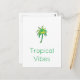 Tropical palm tree card with bright green and yellow design and a centered “Greetings from paradise” message inside.